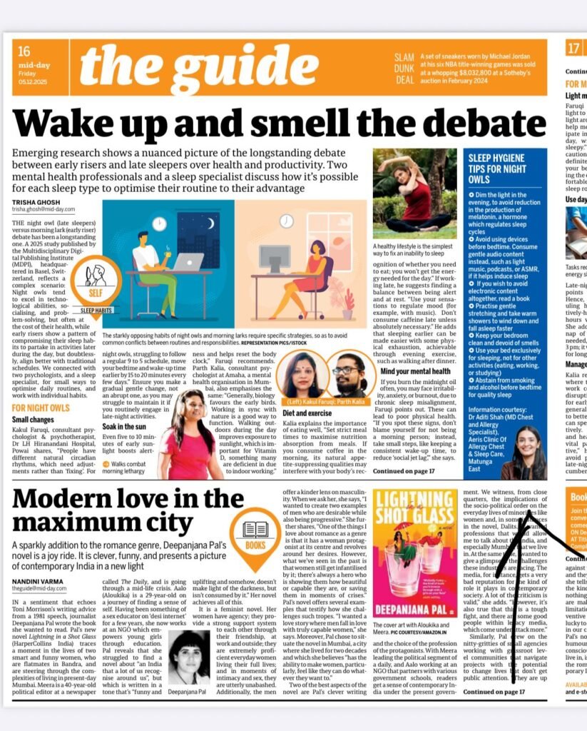 Others Article in Midday by Dr Aditi Shah on Sleep hygiene’s ByDr. Aditi Shah December 5, 2025December 6, 2025Write a Comment on Article in Midday by Dr Aditi Shah on Sleep hygiene’s
